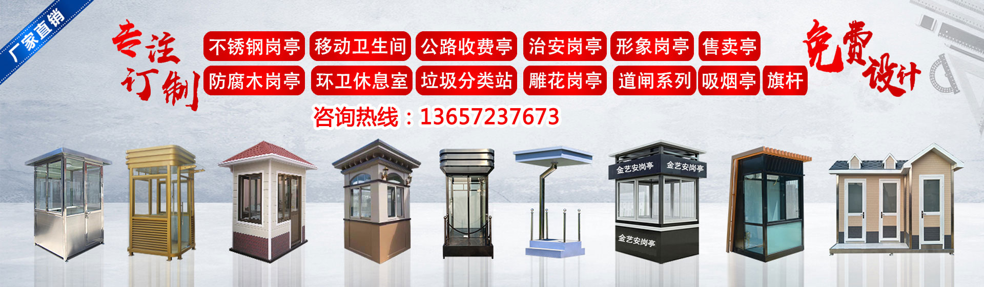 武漢金藝安金屬制品有限公司(簡稱JYA)是一家專業(yè)從事設(shè)計(jì)、生產(chǎn)制作加工、銷售及售后服務(wù)一體化,為客戶提供建筑/交通/市政配套設(shè)施一站式服務(wù)企業(yè)。主營:不銹鋼崗?fù)ぃ蛋鄭復(fù)ぃ蜗髰徟_(tái),防彈崗?fù)ぃ紘娖釐復(fù)ぃ伟矋復(fù)ぁ⒕坝^崗?fù)ぃ圬浲ぃ\噲鍪召M(fèi)亭、高速公路收費(fèi)亭,不銹鋼旗桿,錐型旗桿,電動(dòng)旗桿等系列產(chǎn)品。廣泛應(yīng)用于:學(xué)校,廣場,體育場館,軍隊(duì),酒店,企業(yè)單位,小區(qū)停車場,學(xué)校,醫(yī)院,工廠、市政交通收費(fèi)、平安城市管理、景觀環(huán)境美化等領(lǐng)域。 我們不斷發(fā)展壯大,秉承“品質(zhì)、信譽(yù)、服務(wù)”的經(jīng)營理念參與市場競爭,堅(jiān)持高技術(shù)、高品質(zhì)、高效率的方針,結(jié)合用戶需求,不斷推出新產(chǎn)品,樹立品牌優(yōu)勢。擁有經(jīng)驗(yàn)豐富的專業(yè)設(shè)計(jì)師和質(zhì)量過硬的施工,銷售服務(wù)網(wǎng)絡(luò)遍及全國各地。 我們的宗旨:誠實(shí)守信, 追求卓越, 客戶至上。今后公司將一如既往,腳踏實(shí)地,與用戶攜手合作,共創(chuàng)輝煌!...